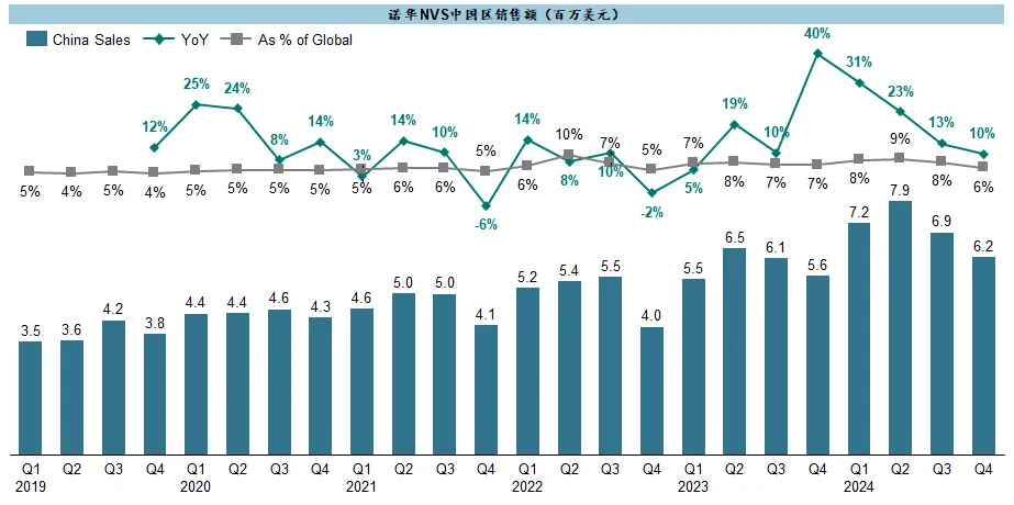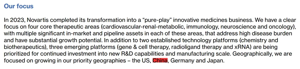 诺华是这些MNC中唯一在中国区仍能延续强势增长的一家,在Diovan和Exforge等心血管传统大品种集采丢标后,依靠Entresto、Xolair、Cosentyx等新一代重磅品种的迅速崛起,在2024年实现了将近20%的同比增长。