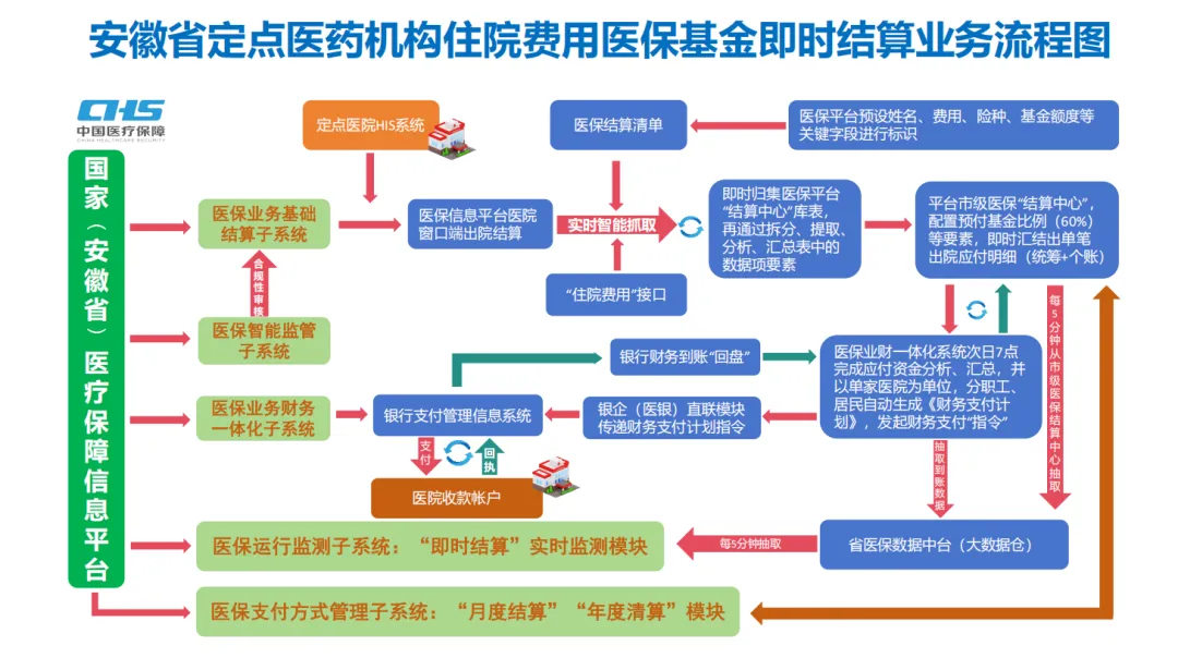 安徽省创新“日拨付、月结算、年清算”的医保基金结算机制,即:患者办理出院结算时,医保信息平台业务子系统实时抓取患者的医保结算信息,自动按照医保基金支付金额的60%予以拨付。