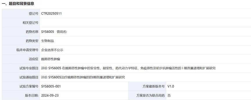 SYS6002(CRB-701)中国I期临床结果
