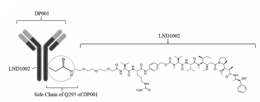 DP303c作为下一代HER2 ADC,抗体部分同样采用曲妥珠单抗,毒素采用MMAE,连接子在VC的基础上稍加改进,采用了Q295的定点偶联,DAR值为2。DP303c结构