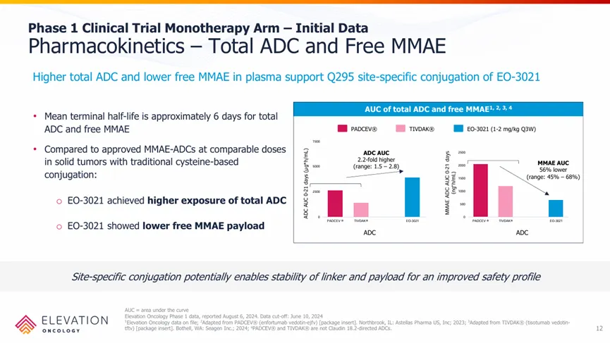 特别是通过药代动力学的分析,相较于传统的VC-MMAE ADC,EO-3021/SYSA1801具有更高的总ADC和血浆游离MMAE暴露量,一定程度显示了Q295定点偶联技术的优势。