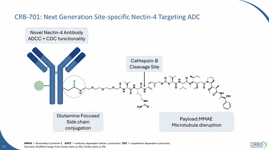SYS6002是石药集团开发的第三款ADC产品,2023年2月13日,石药集团与Corbus Pharmaceuticals订立独家授权协议,将Nectin-4 ADC在海外多个地区的开发及商业化授权给Corbus,后者将支付750万美元预付款,以及1.3亿美元的潜在开发及监管里程碑付款,以及最多5.55亿美元的潜在销售里程碑付款 ,以及一定比例的销售分成。合同总金额高达6.925亿美元。SYS6002(CRB-701)也在多个方面进行了差异化的设计,Fc端保持完整的CDC/ADCC功能,同时采用MMAE作为payload,酶裂解工艺,Q295的定点偶联,DAR值为2。