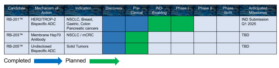 官网显示,Radiance 目前管线中仅有 3 款产品,其中仅有 HER2/TROP2 双抗 ADC RB-201 进入了临床阶段,还是 2024 年 1 月从百奥赛图引进的。