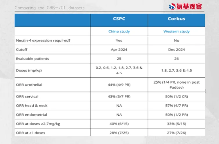 石药集团在中国开展的1期临床,初步ORR是28%;而Corbus在海外开展的1期临床,初步ORR是27%。可以说,两个数据是基本接近的。