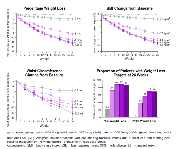 [1] 52-OR: Effect of Oral Nonpeptide GLP-1 Receptor Agonist Orforglipron (LY3502970) in Participants with Obesity or Overweight—A Phase 2 Study. https://doi.org/10.2337/db23-52-OR