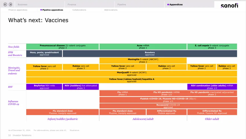 赛诺菲:主要产品收入均衡;RSV单抗迎战默沙东,肺炎疫苗挑战辉瑞