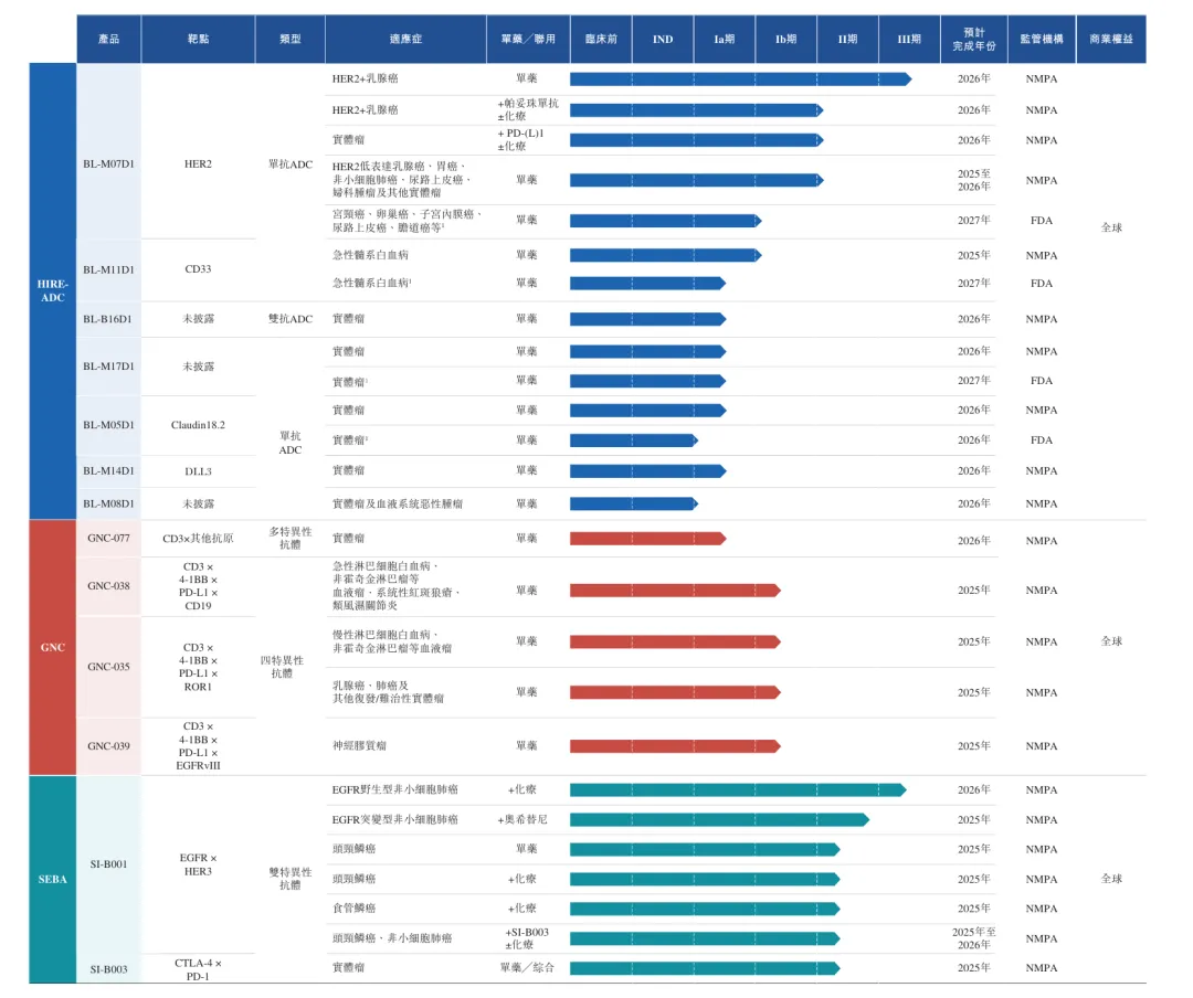 本次A股的募资主要投入在公司三大平台构建的管线中,ADC平台包括BL-B01D1为首的8条临床管线,多抗GNC平台有4款临床管线,以及ARC(核药)研发平台。BL-B01D1之后,百利天恒有哪些新管线或潜力管线具备看点?不妨抽取几款管线来分析。