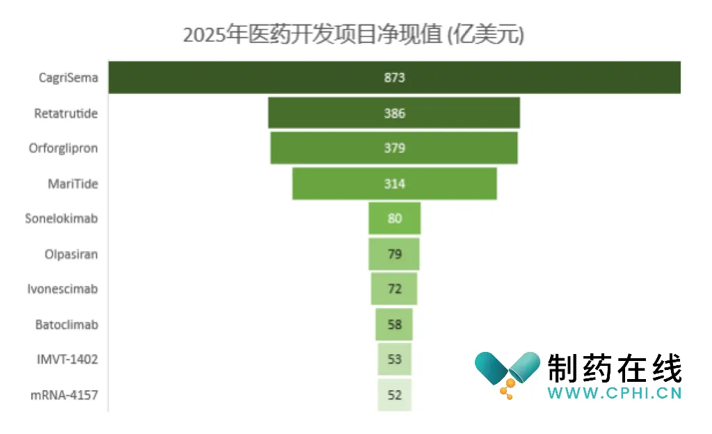 根据Evaluate Pharma的预测,2025年最具价值的研发项目归属诺和诺德的肥胖症药物CagriSema,尽管这款药物的III期临床数据“仅仅”给出了23%的减重率,但凭借其特殊的作用机制和相对较高的安全性,仍然被相当的投资者看好。