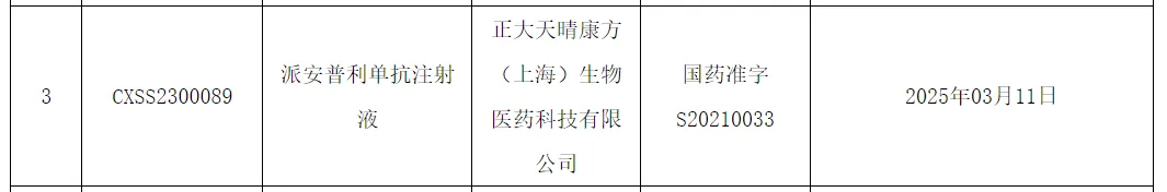 正大天晴康方(上海)生物的派安普利单抗注射液新适应症获批上市,联合化疗一线治疗复发或转移鼻咽癌(NPC)。