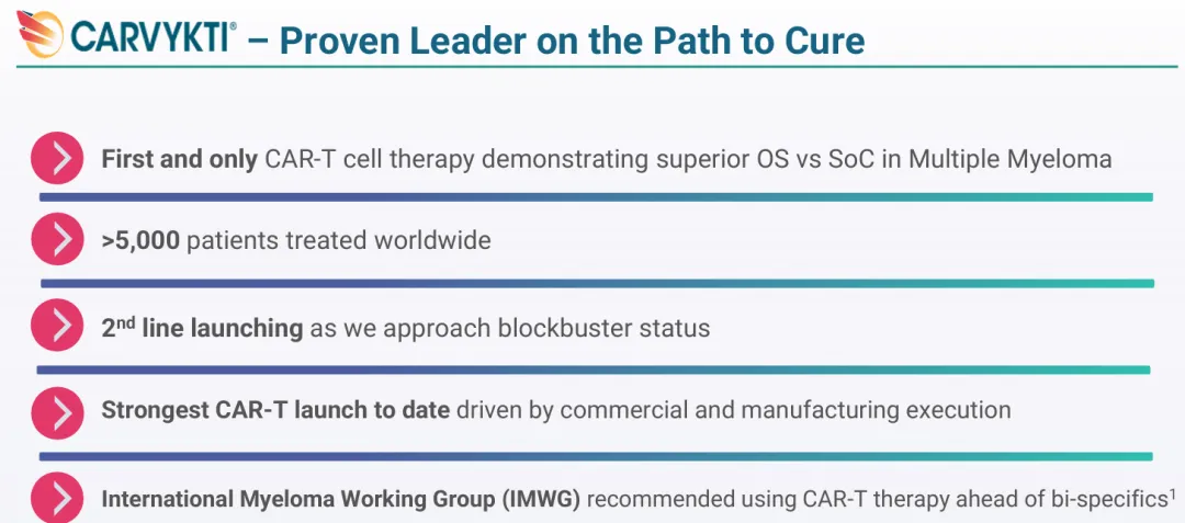 在电话会议上,黄颖博士淡化了anito-cel在2026年对 Carvykti 可能构成的威胁。他认为,anito-cel获批后将进入晚期治疗领域,而 Carvykti 的大部分收入将来自早期治疗阶段。他表示到 2025 年底,传奇生物预计Carvykti约三分之二至四分之三的收入将来自二线至四线治疗。