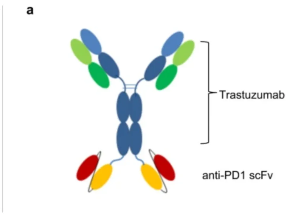 (图源:Bispecific antibody simultaneously targeting PD1 and HER2 inhibits tumor growth via direct tumor cell killing in combination with PD1/PDL1 blockade and HER2 inhibition)