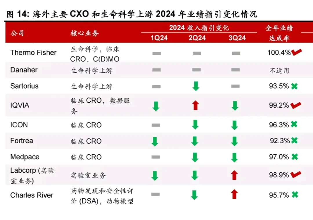 在这复杂交错的局面下,大量头部CXO公司对自己的业绩指引频繁下调,最终达成年初业绩指引的只是少数。