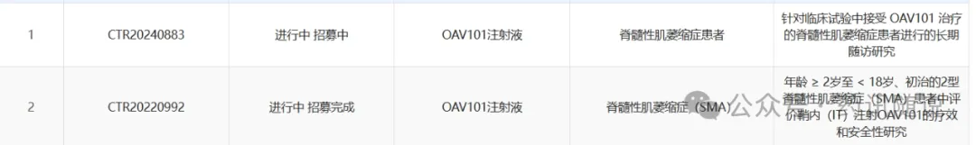 2020年5月,Oav101 IT获得EMA批准,商品名:Zolgensma/索伐瑞韦,规格:2-10^13vg/ml,输注用溶液,适应症:SMN1基因双等位突变5q SMA患者和临床诊断的1型SMA、或SMN1基因双等位突变5q和最多3copySMN2基因的SMA患者。
