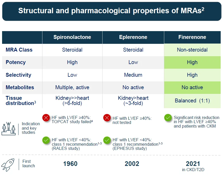 非奈利酮为新一代非甾体选择性盐皮质激素受体拮抗剂(MRA),此前已经获批用于治疗肾病综合征。