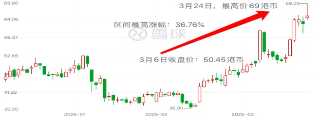 对此,市场给予极大认可,云顶新耀股价应声大涨,一度超10%,再创近4年新高。自3月7日至今,在一个又一个催化剂的驱动下,云顶新耀股价累计涨幅接近30%,领涨港股。