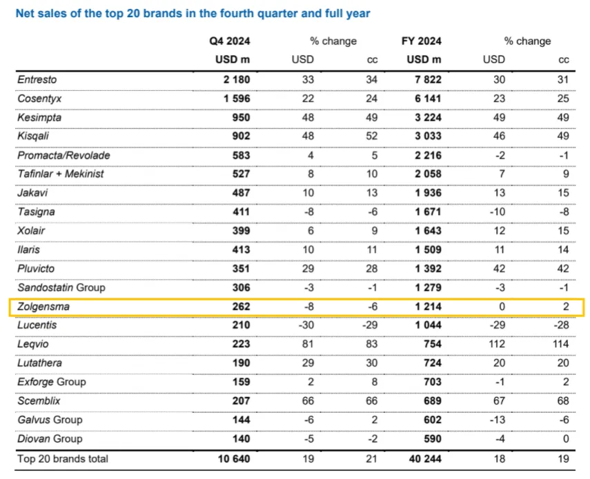 Zolgensma2024年净销售额