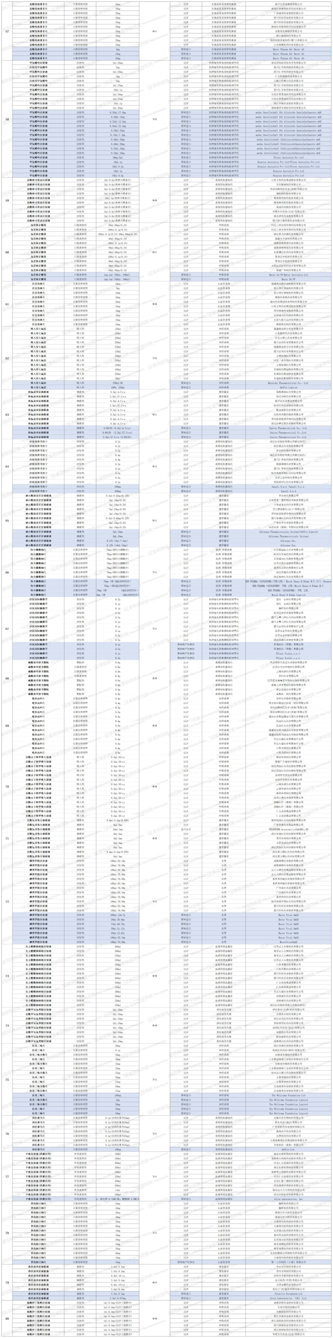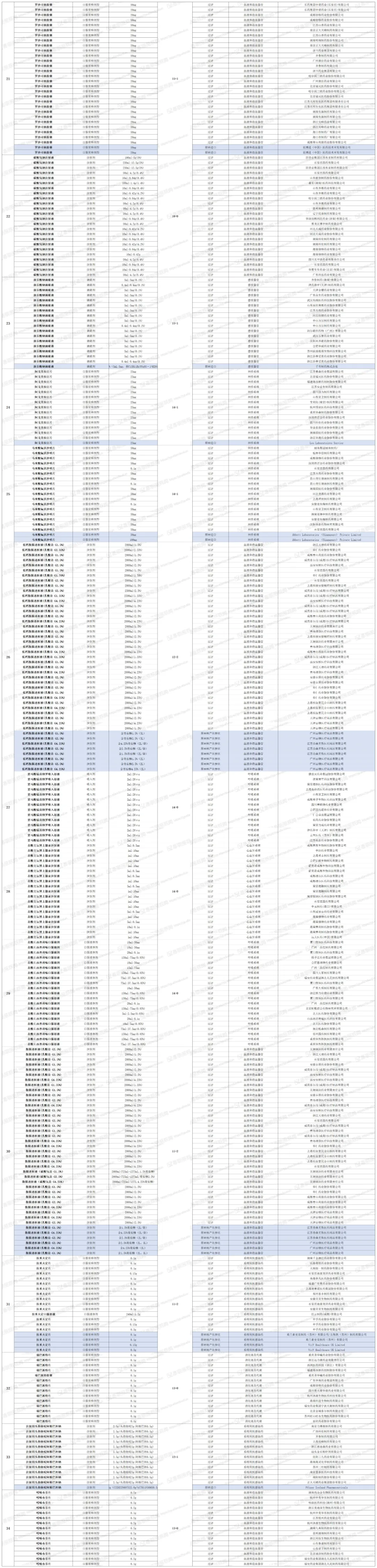 从市场规模来看,初步满足条件的品种中有20余个的销售额超过10亿元,包括头孢他啶阿维巴坦、亚胺培南西司他丁、法莫替丁、碘普罗胺等注射剂,麦考酚、奥拉帕利、达格列净等口服常释剂型,乙酰半胱氨酸、七氟烷等吸入剂等。