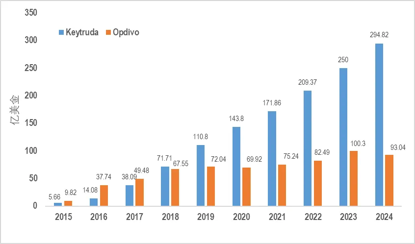 Keytruda和Opdivo历年销售额