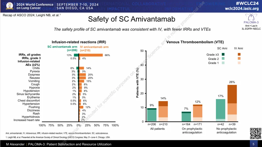 安全性方面,Amivantamab皮下制剂则显著改善,输液整体不良反应从66%降低到13%,静脉血栓栓塞的发生率也降低了30%以上,患者满意度大幅提高。