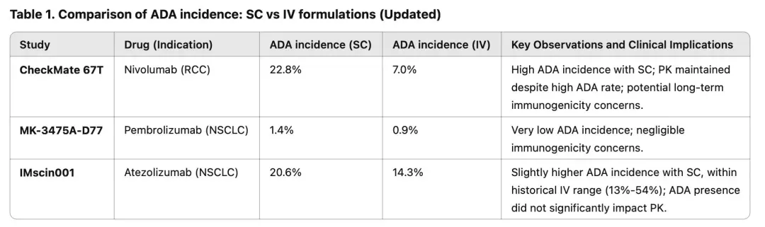 PD-1/L1皮下制剂ADA比较