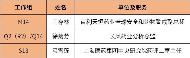 中国医药创新促进会(以下简称“我会”)三位工作组组长受邀现场参会,代表国际药品制造商协会联合会(以下称“IFPMA”)ICH M14、Q2(R2)/Q14、S13三个工作组参加相关指导原则的修订讨论工作。专家名单如下: