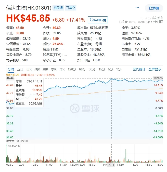 一份首度盈利的2024年业绩报告,让信达生物的股价在3月27日高开高走,盘中最高涨幅一路冲至近19%,市值超750亿港元。