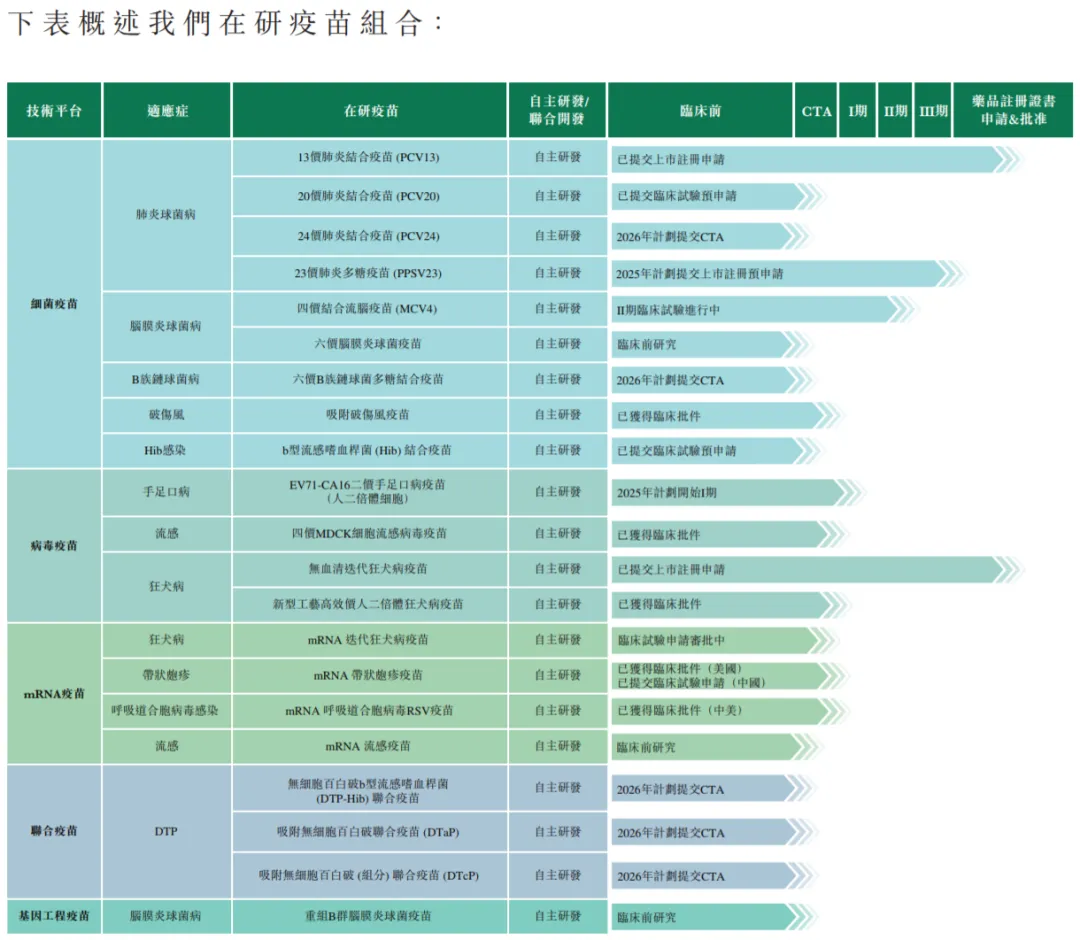 拥有21款在研疫苗产品,其中,13价肺炎结合疫苗及无血清迭代狂犬病疫苗已完成III期临床,处于申报上市阶段。同时,新一代mRNA技术平台具备领先优势,mRNA带状疱疹疫苗以及mRNA呼吸道合胞病毒疫苗已在美获得临床许可。