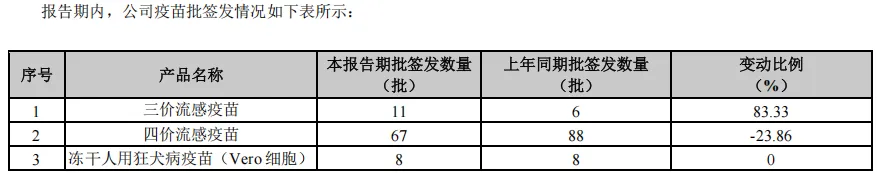 其中,流感疫苗为公司的主要销售产品。近年来,流感疫苗销售收入均占公司营业收入的90%以上。2021年至2024年,公司流感疫苗批签发批次数量持续保持国内龙头地位。2024年,公司三价流感疫苗批签发11批次,四价流感疫苗批签发67批次。