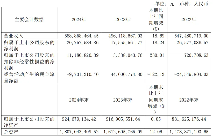 3月29日,欧林生物发布2024年年度报告:公司实现营收5.89亿元,同比增长18.69%;归母净利润0.21亿元,同比增长18.24%;归母扣除净利润0.11亿元,增幅达230.01%。