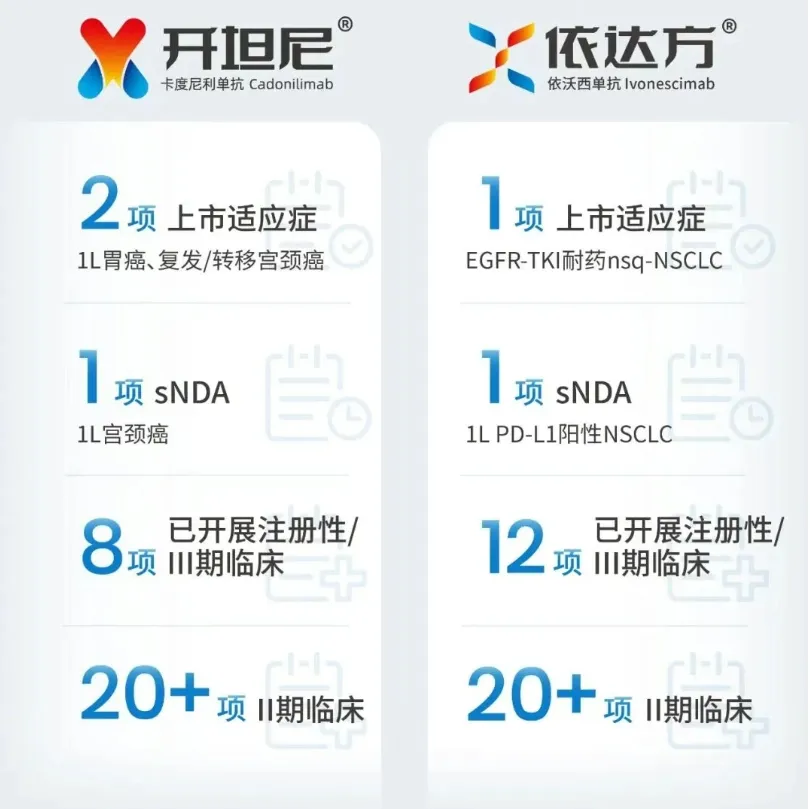此外,康方生物独占两款肿瘤免疫双抗卡度尼利和依沃西,随着依沃西在2024年一举头对头击败K药,这两款也成为全球明星产品,并引发国产双抗药物出海潮。