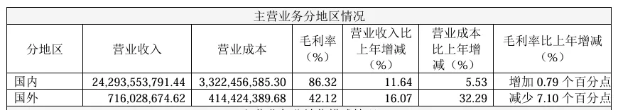 再从业务分布区域来看,2024年,恒瑞医药国内营收242.94亿元,同比增长11.64%;国外营收7.16亿元,同比增长16.07%。
