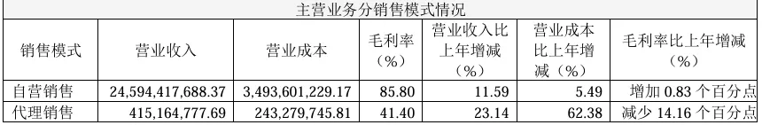 从销售模式来看,2024年恒瑞医药自营销售为245.94亿元,同比上涨11.59%;代理销售为4.15亿元,同比上涨23.14%。