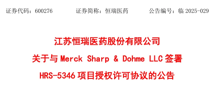 2025年3月,恒瑞医药再度“造船出海”,宣布与默沙东就其脂蛋白(a)[Lp(a)]口服小分子项目(包括名为HRS-5346的先导化合物)达成独家许可协议。
