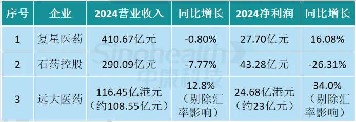 “体制外”部分药企2024年业绩情况