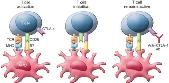 CTLA-4抑制剂的作用机制,图源:解螺旋