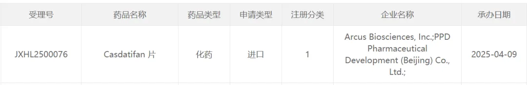 今日(4月9日),中国国家药监局药品审评中心(CDE)官网最新公示,Arcus Biosciences申报的1类新药casdatifan片的临床试验申请获得受理。公开资料显示,这是一款在研HIF-2α抑制剂,本次是该产品首次在中国申报IND。Arcus Biosciences公司近日公布了该产品的临床1/1b期试验ARC-20的最新数据,在所有3个剂量组中,casdatifan的疾病控制率均超过80%(分别为81%、86%、85%)。Arcus公司新闻稿表示,这些数据展现了casdatifan成为“best-in-class”疗法的潜力。
