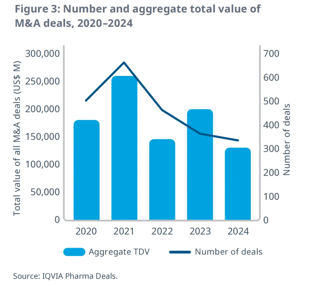 近期,IQVIA Institute发布报告IQVIA Pharma Deals: Review of 2024,从收并购交易、许可权交易、合作研发交易、治疗领域交易等方面详细分析了2024年生命科学领域内的各项交易情况并对2025年全球医药市场交易趋势展开深度洞察。