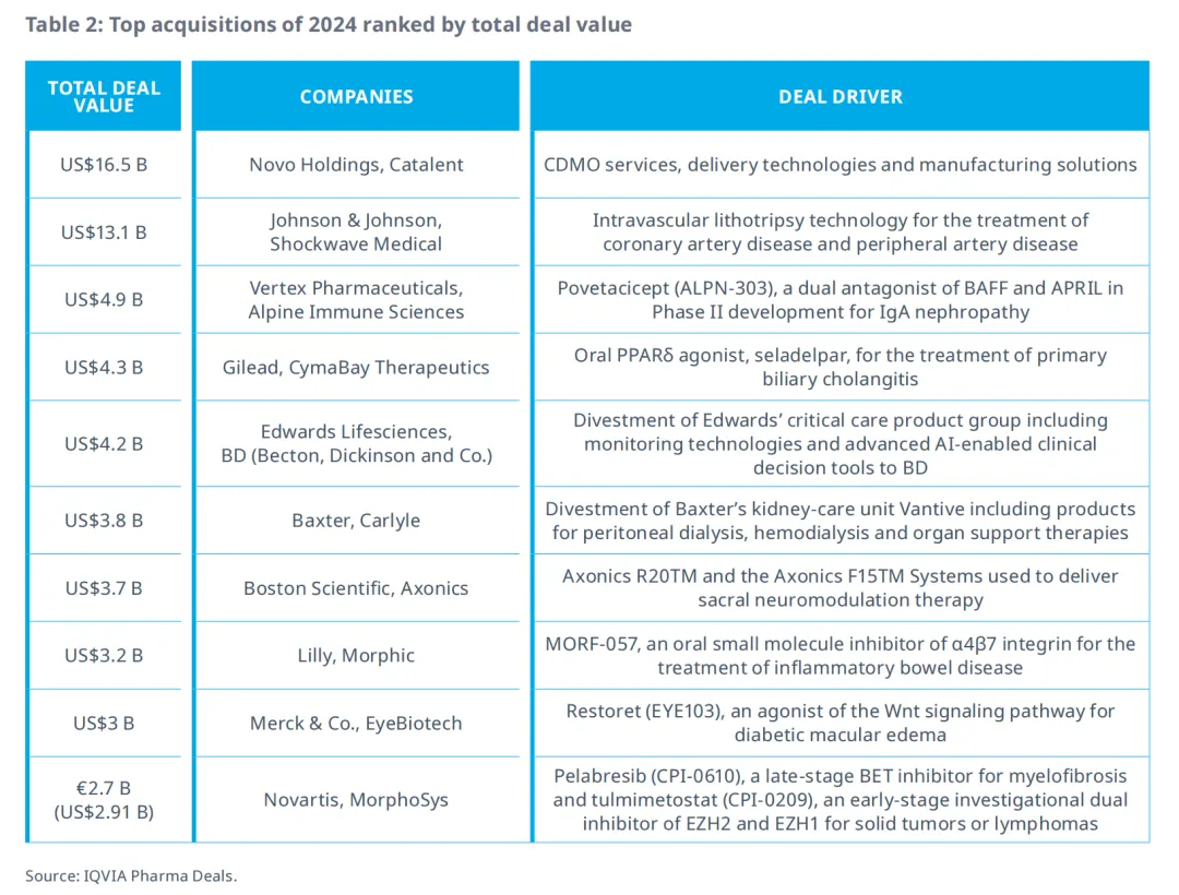与2023年的情况不同,2024年最大的并购交易聚焦于制造产能而非新疗法,Novo