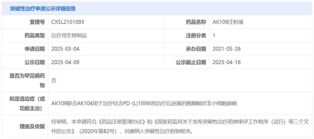 4月9日,中国国家药监局药品审评中心(CDE)官网最新公示,有5款新药拟纳入突破性治疗品种,分别来自鞍石生物、康方生物、翰森制药、三生制药,针对的适应症为不同类型的非小细胞肺癌(NSCLC)。