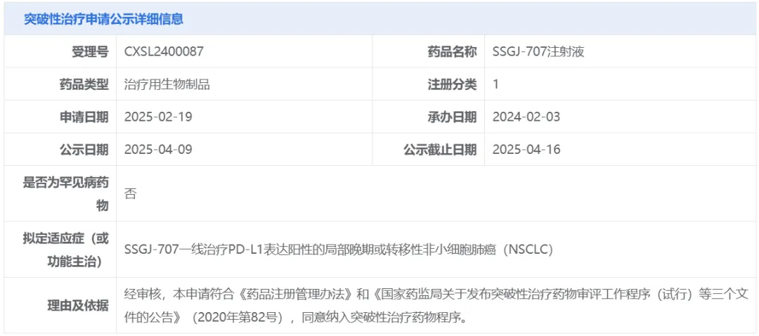 SSGJ-707是一款VEGF/PD-1双抗,研究人员正在推进该产品在包括单药一线治疗PD-L1阳性的NSCLC、联合化疗一线治疗NSCLC、转移性结直肠癌(mCRC)、以及包括子宫内膜癌、卵巢癌等在内的晚期妇科肿瘤等2期临床研究。