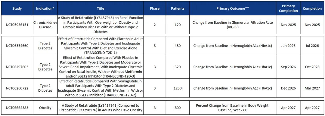 除此之外,Retatrutide还在开展TRANSCEND系列3期试验,预计明年至后年完成(图8)。