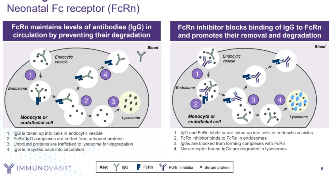 Batoclimab(RVT-1401/HL161)是由Immunovant开发的一款早于IMVT-1402的靶向FcRn的一种全人源IgG1单克隆抗体,通过阻断FcRn与IgG的结合来降低致病性IgG水平。