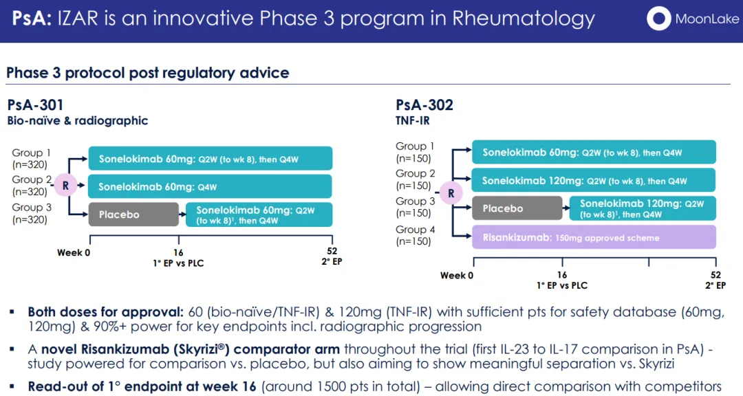今年1月8日,MoonLake宣布,已在青少年化脓性汗腺炎 (HS)、掌跖脓疱病 (PPP) 和中轴型脊柱关节炎 (axSpA) 患者三个新适应症的三项新试验中筛选了患者,以评估 sonelokimab,一种旨在治疗炎症性疾病的研究性纳米抗体®。这将使 MoonLake 主导的临床试验数量增加到 10 项,并与自 2021 年公司成立以来招募 3,000 多名患者参加 sonelokimab 临床试验的计划保持一致。