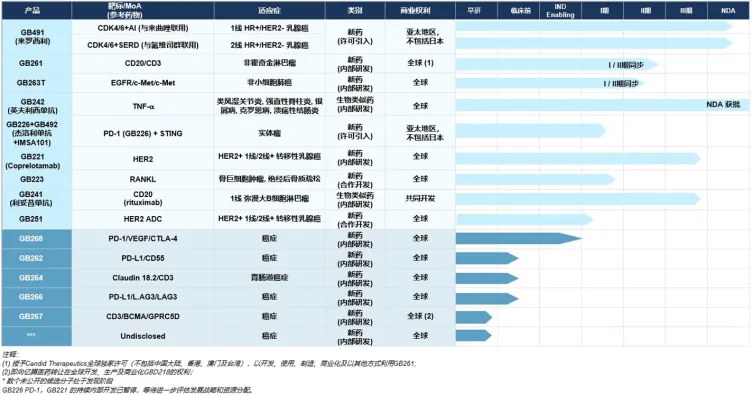 就嘉和生物而言,该公司主要聚焦潜在FIC(全球首创)和BIC(同类最优)创新管线,在肿瘤及自免领域拥有10多款产品组合,包括GB491(来罗西抗)、GB261、GB242(英夫利西单抗)、GB223、 GB241(利妥昔单抗)等。