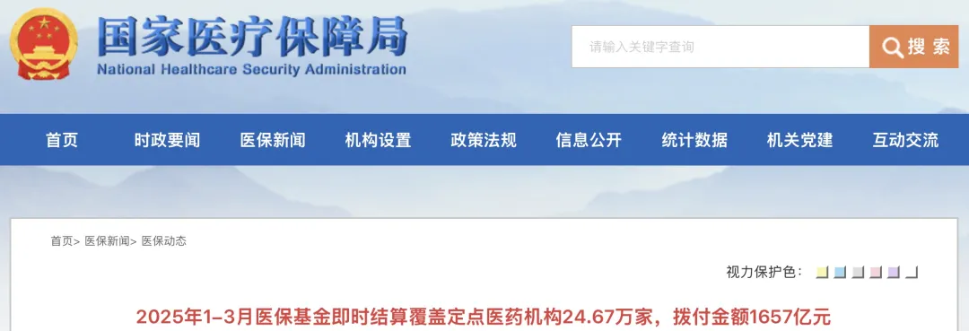 4月16日,国家医保局发布《2025年1-3月医保基金即时结算覆盖定点医药机构24.67万家,拨付金额1657亿元》,介绍国内医保即时结算模式推行情况。