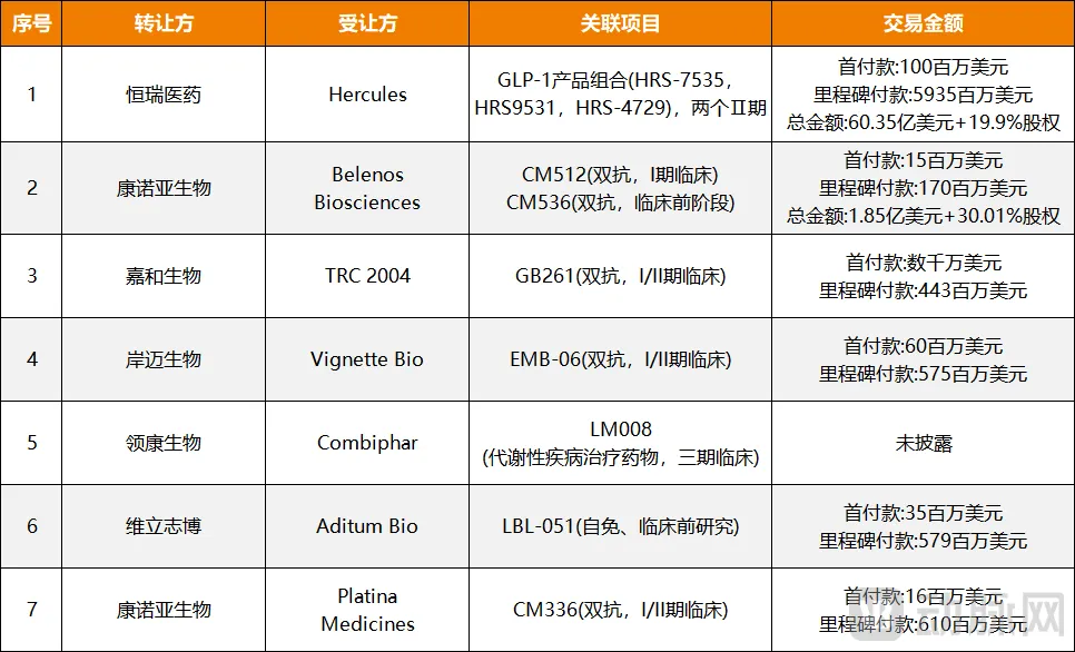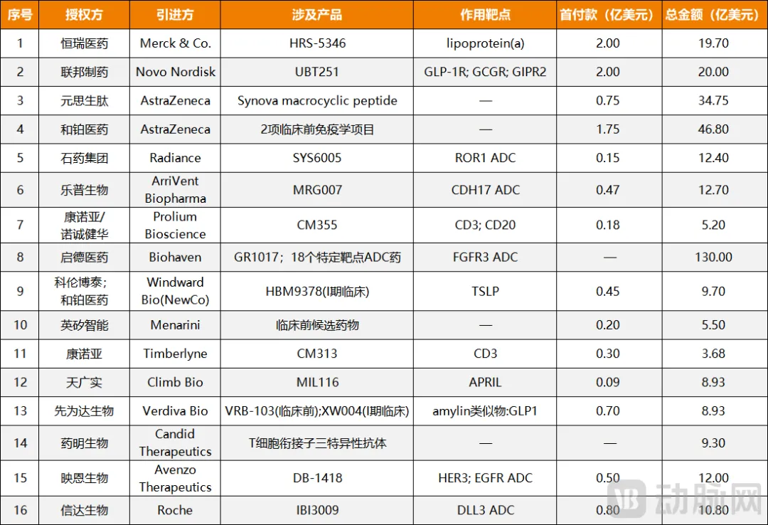 图1.2025年一季度已披露金额license-out项目汇总(数据来源:医药魔方)
