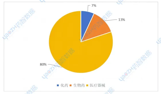 2025年第一季度数据显示,医药领域专利授权呈现显著的“医疗器械主导、药物研发分化”特征。从饼状图占比来看,医疗器械专利以80%的绝对优势领跑,表明该领域技术创新高度活跃,与智能医疗设备(如可穿戴监测装置、AI影像诊断仪器)、新型手术器械及老龄化相关产品(如康复辅具)的研发热潮密切相关,生物药专利占比13%,虽远低于医疗器械,但反映出单抗、基因治疗等前沿赛道的持续投入,其占比偏低或受制于研发周期长、专利壁垒高等因素;化药专利占比仅7%,凸显传统化学制药面临创新瓶颈,企业或转向改良型新药(如缓释剂型)或差异化布局生物类似药。这一结构提示:医疗器械的“短平快”研发模式更易形成专利产出,而药物领域需突破底层技术(如靶点发现)以提升竞争力。