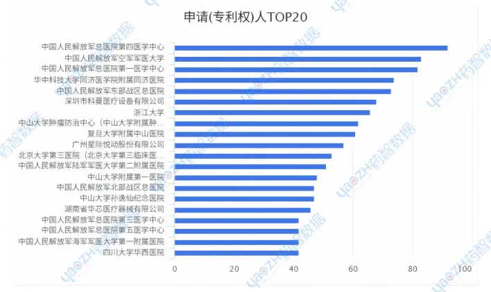 高校与医疗机构协同发力,华中科技大学同济医学院附属同济医院、中山大学肿瘤防治中心等三甲医院跻身前五,专利多聚焦肿瘤微创治疗设备、影像导航系统等临床转化技术;浙江大学、复旦大学等高校依托附属医院资源,在智能康复器械、手术机器人等方向形成专利集群,彰显“医工结合”模式的效能。