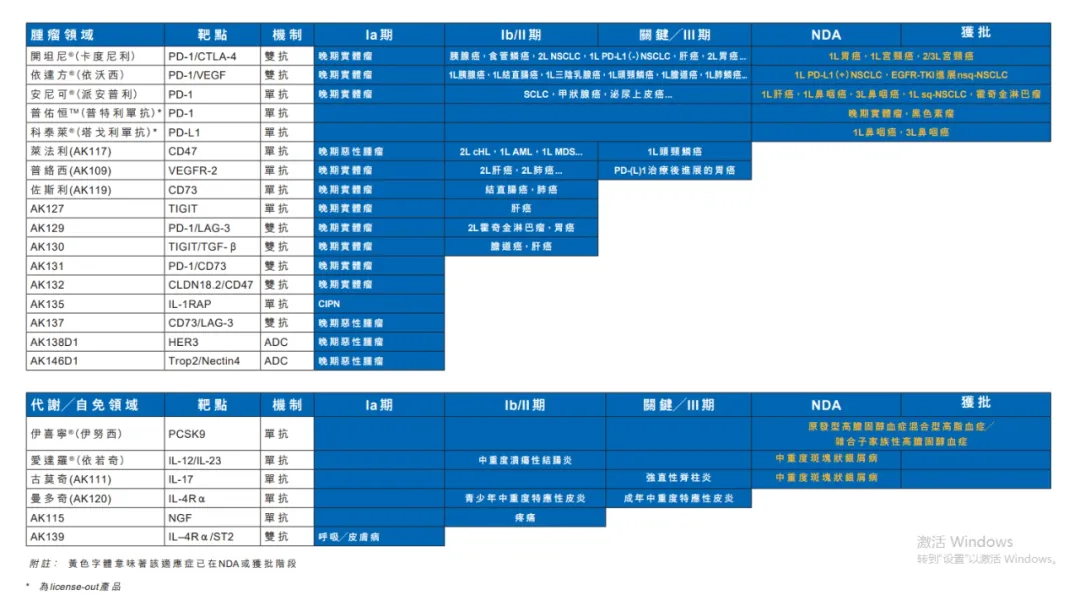 (康方生物产品管线情况,来源:企业年报)
