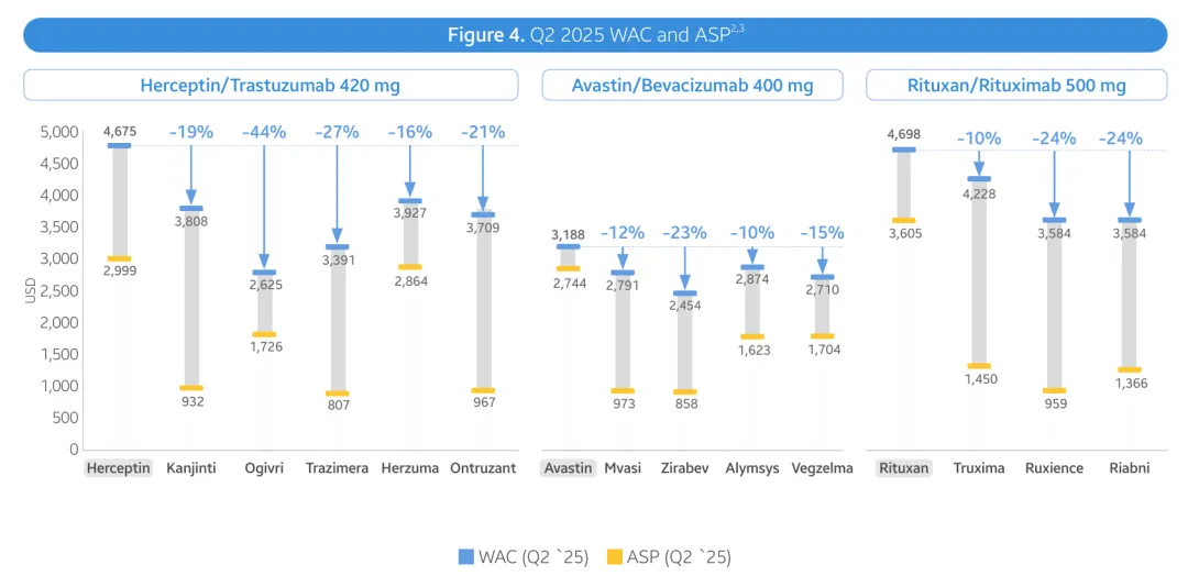 然而,上述现象并未在肿瘤领域复刻。贝伐珠单抗(Avastin)、曲妥珠单抗(Herceptin)和利妥昔单抗(Rituxan)的生物类似药在定价没有优势的情况下,占据了对应原研药市场超75%的份额。